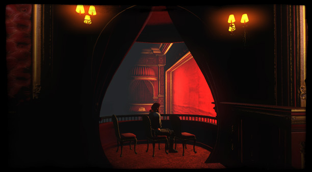 In diesem netten Separee kann man in aller Ruhe seine Waffen reinigen, während man Illuminaten beim Theaterspielen zusieht.